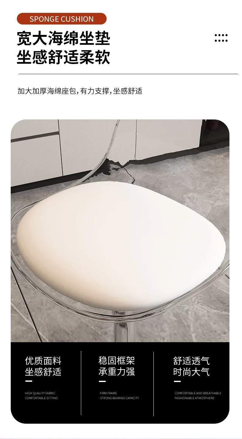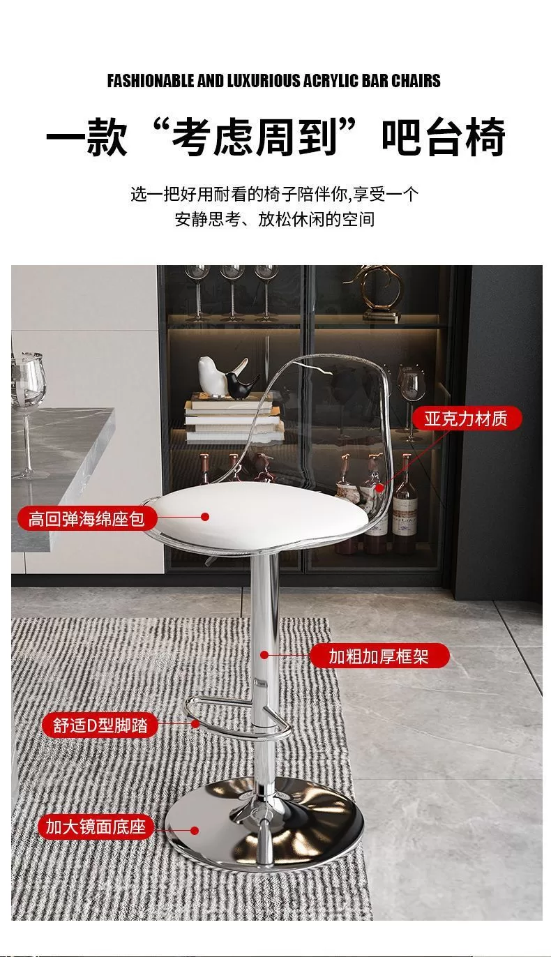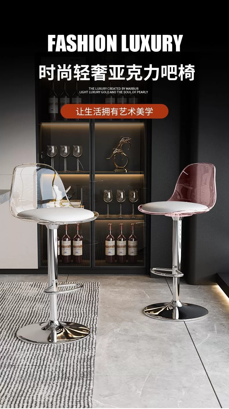 網紅Ins風壓克力家用高級吧台高脚椅 (5色)