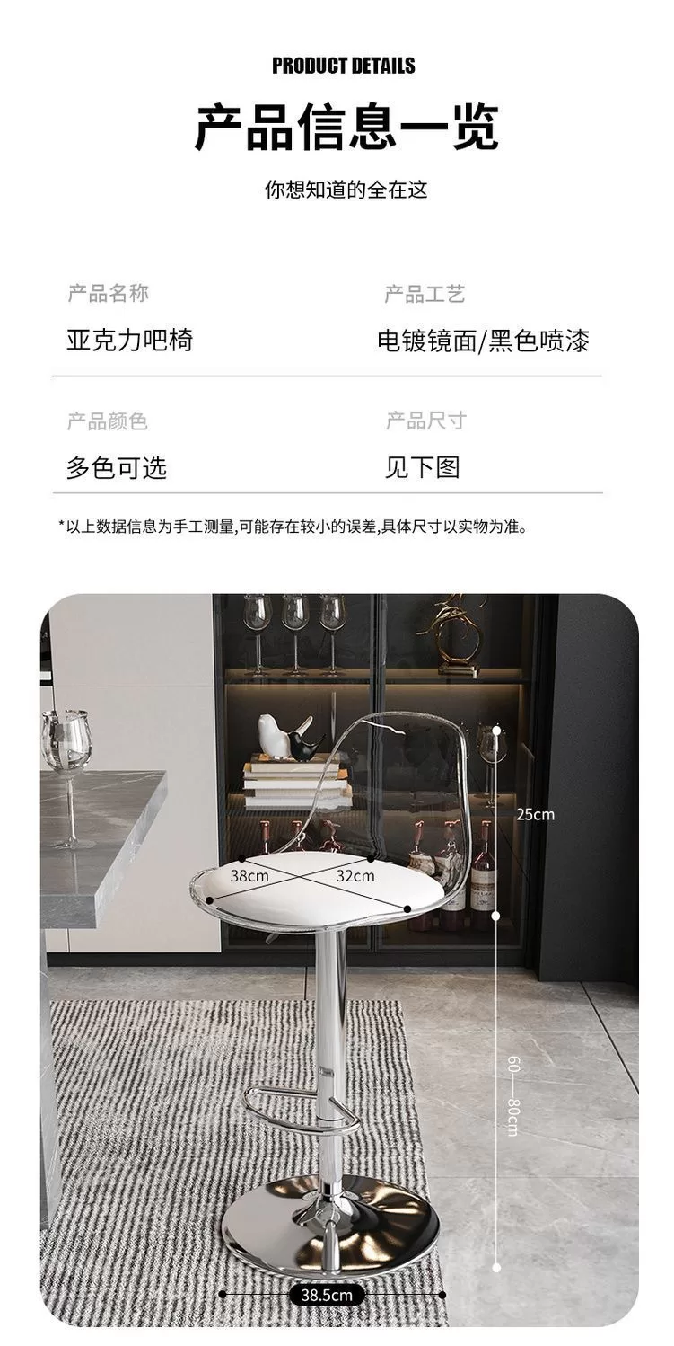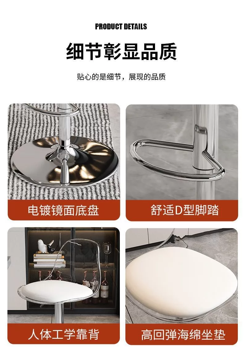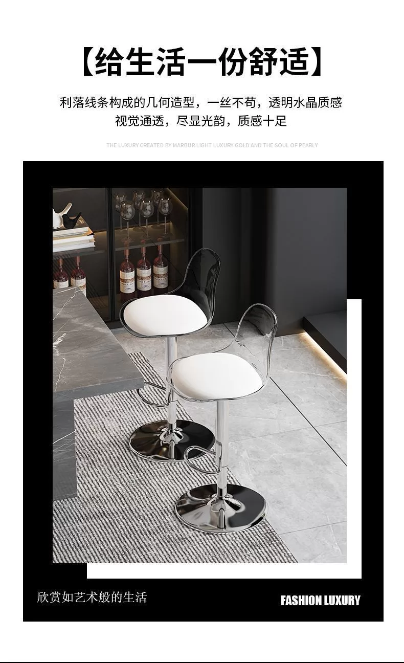 網紅Ins風壓克力家用高級吧台高脚椅 (5色)