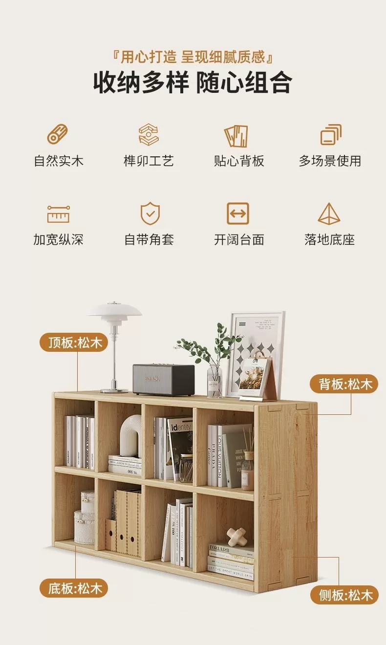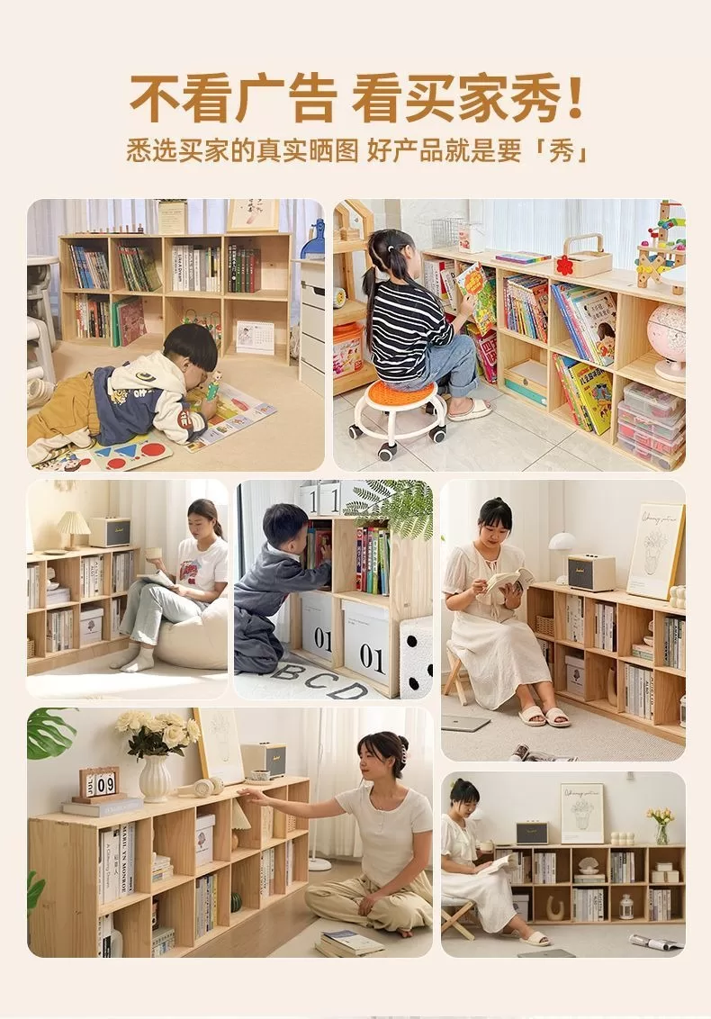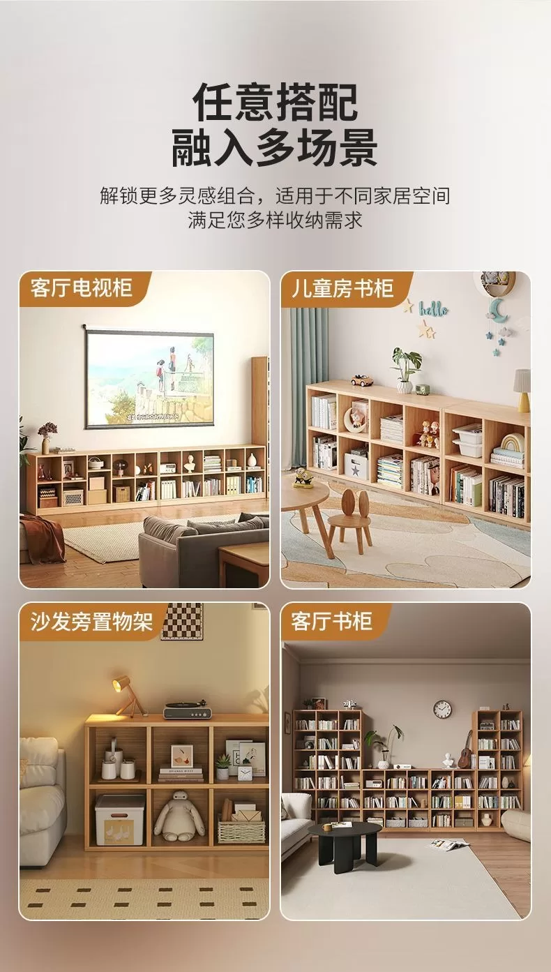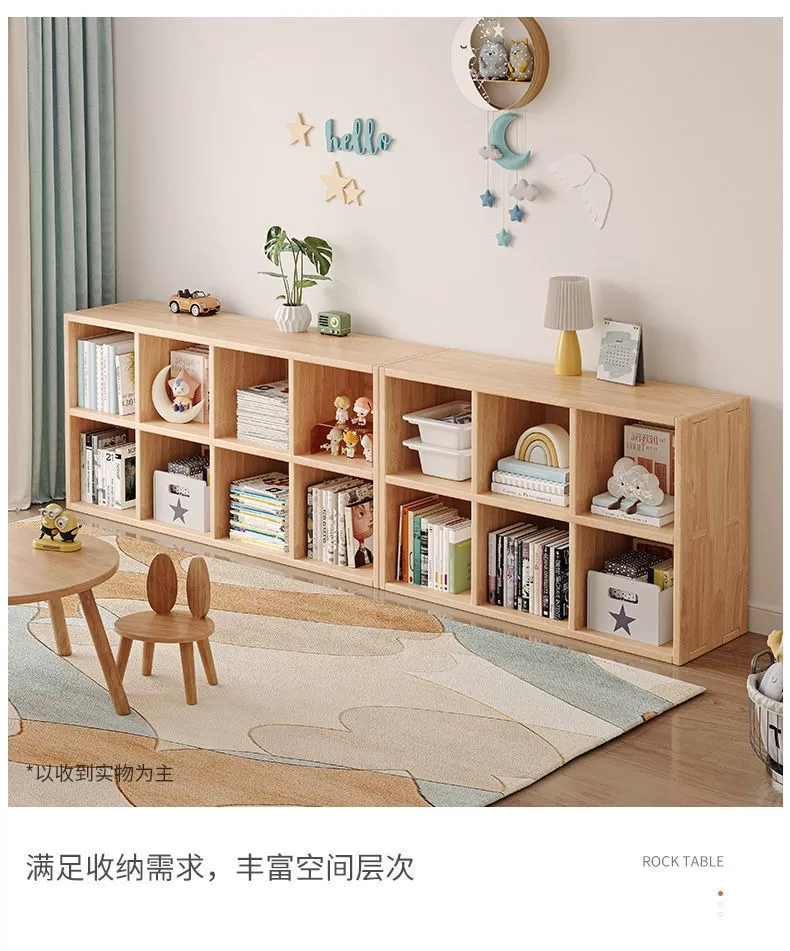 兒童學生儲物收納櫃|實木置物落地書架|客廳格子組合