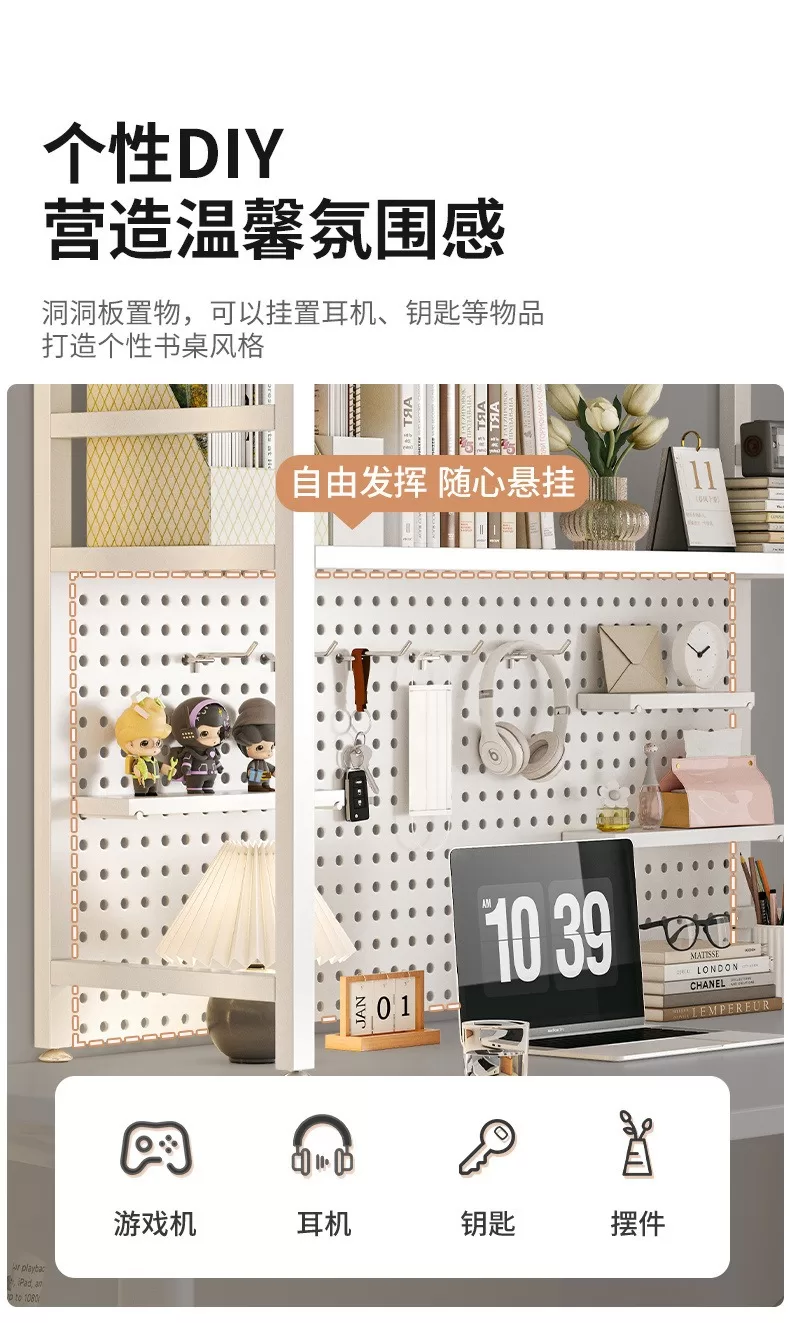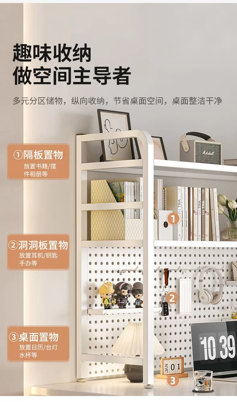 鐵藝桌面洞洞板|書桌收納置物展示書架 (2色)