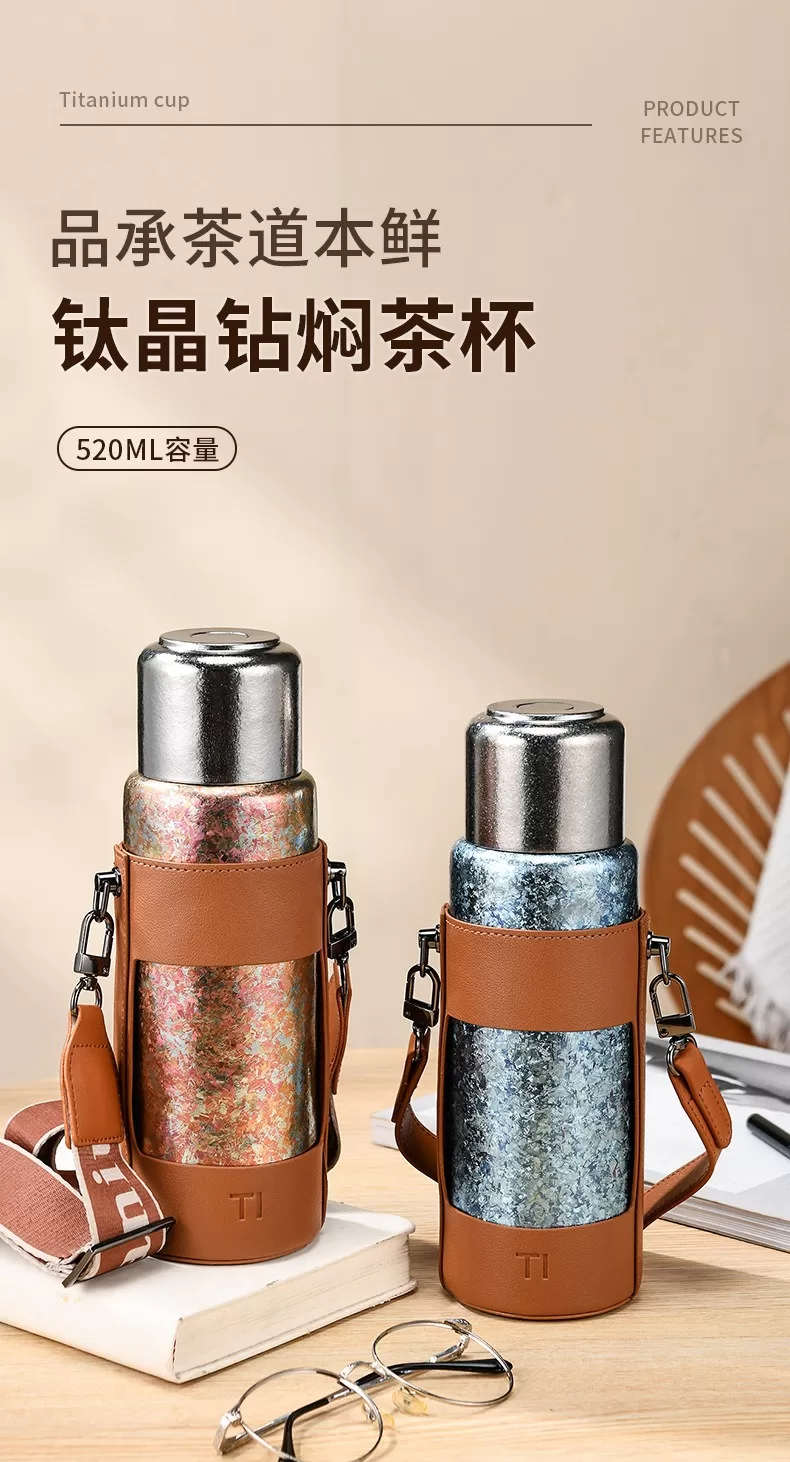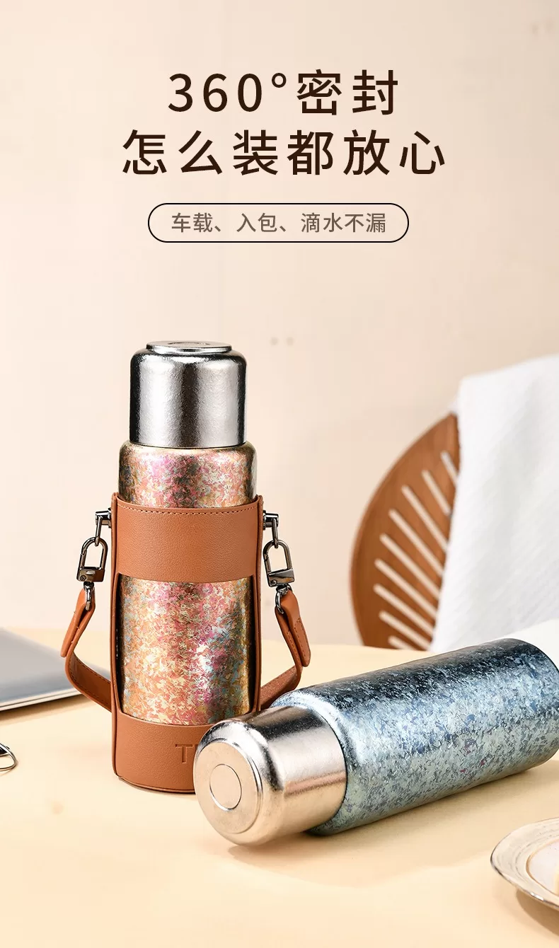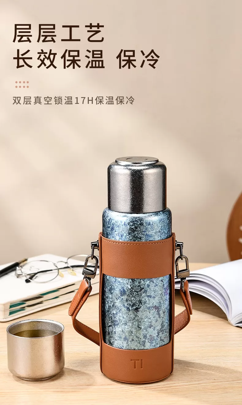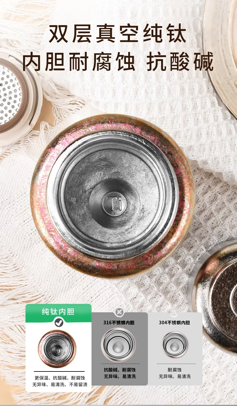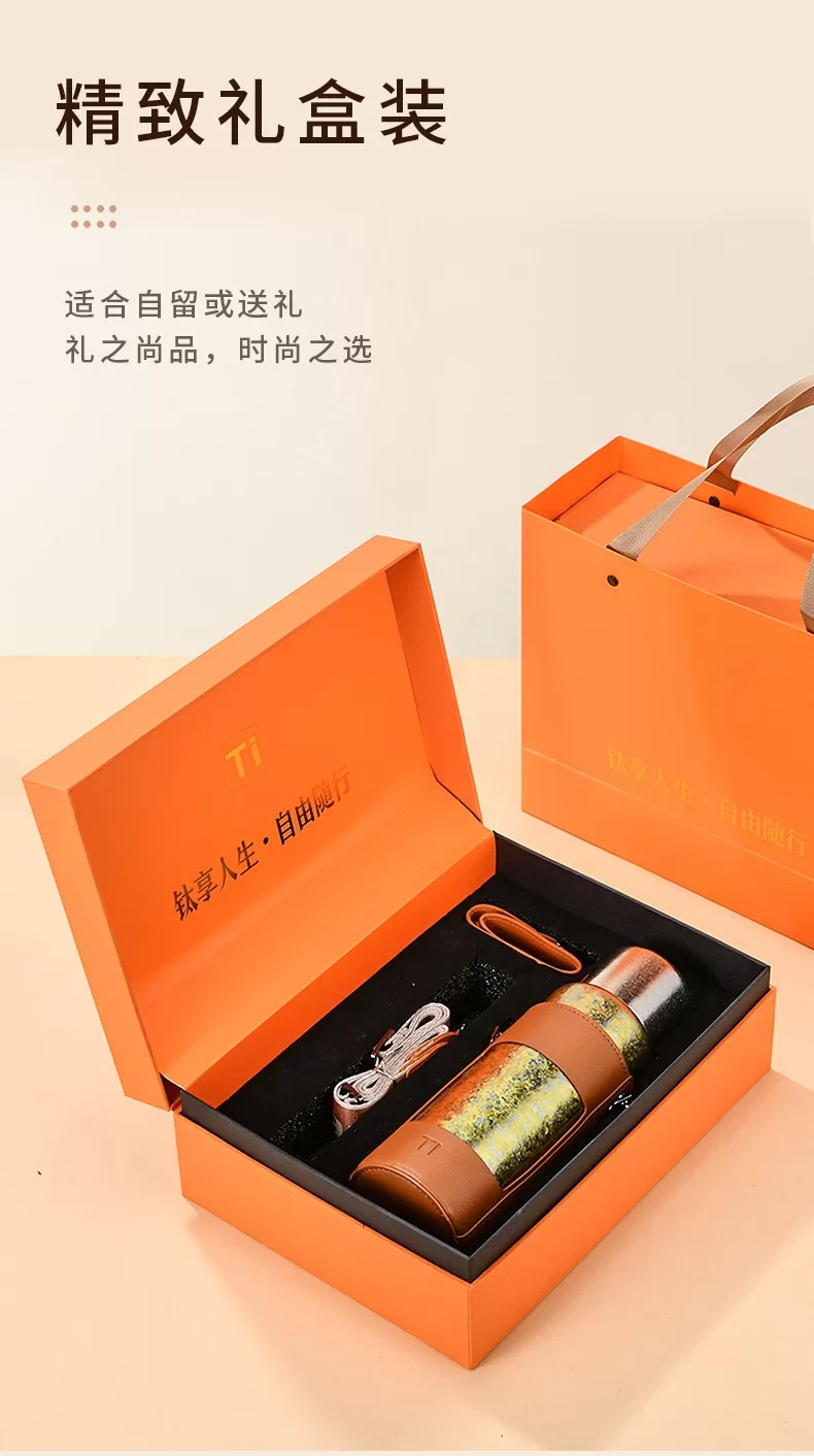 雙層鈦晶真空茶水分離養生純鈦保溫杯禮盒 (5色)