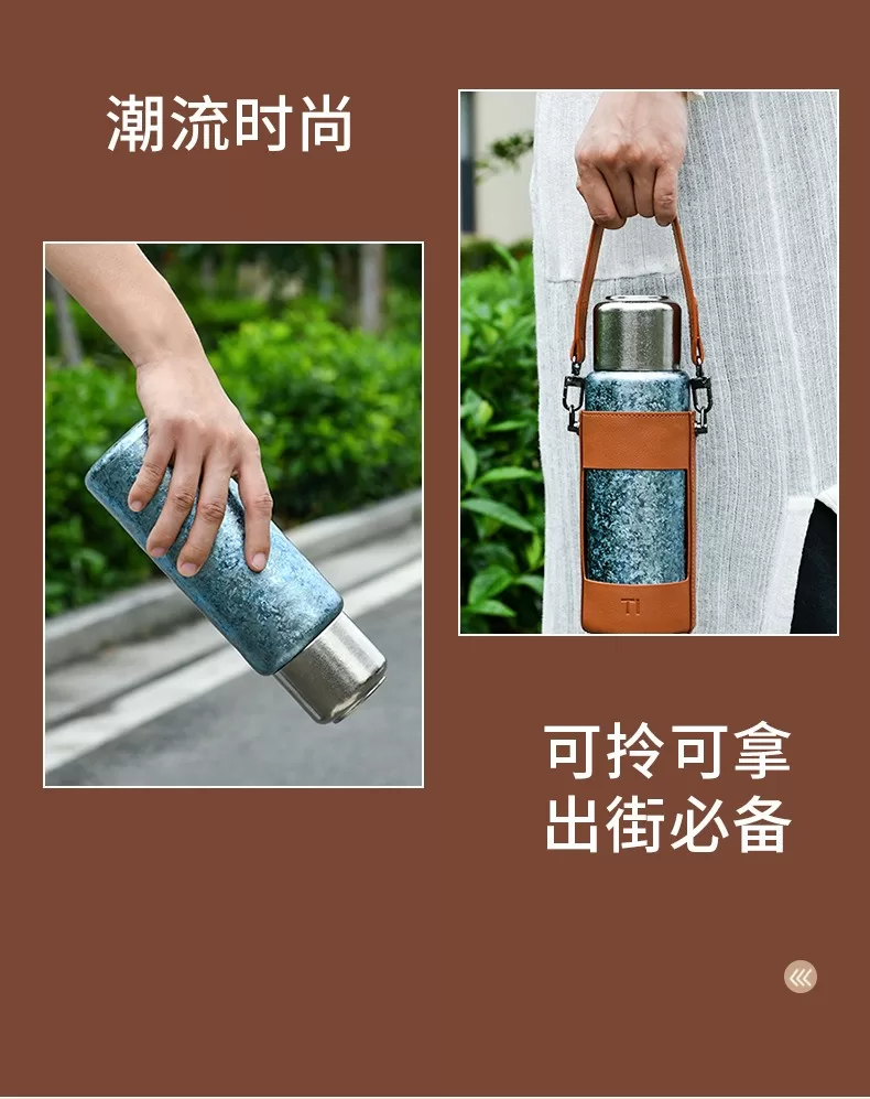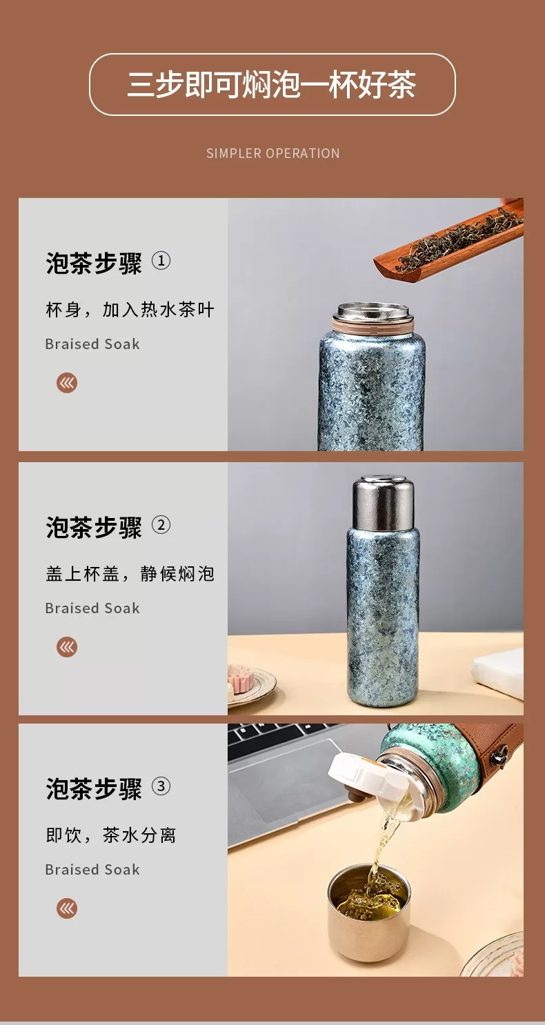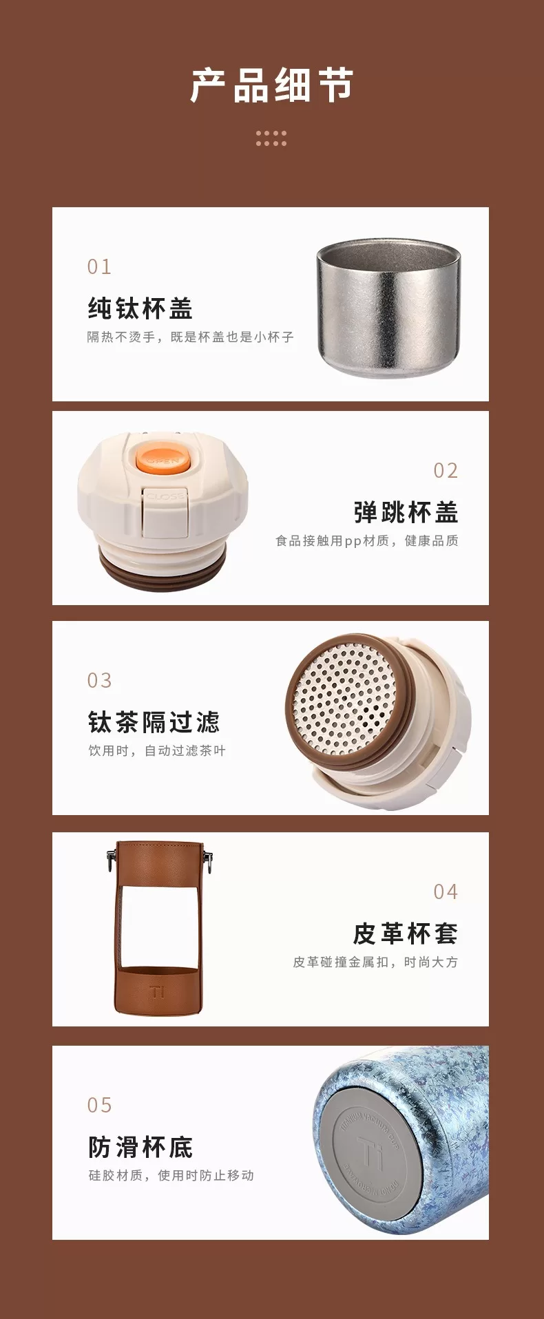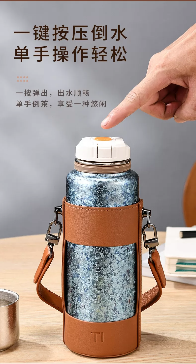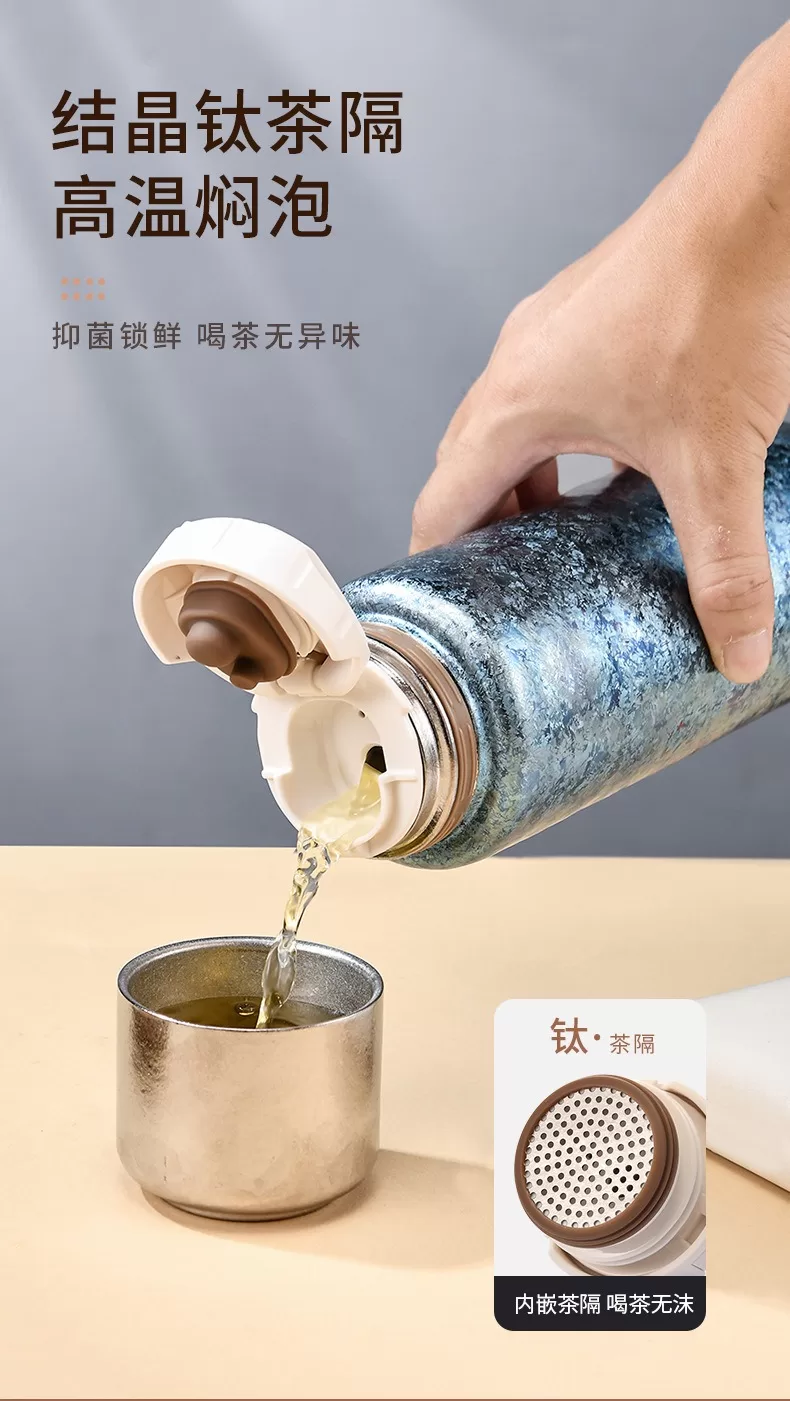 雙層鈦晶真空茶水分離養生純鈦保溫杯禮盒 (5色)