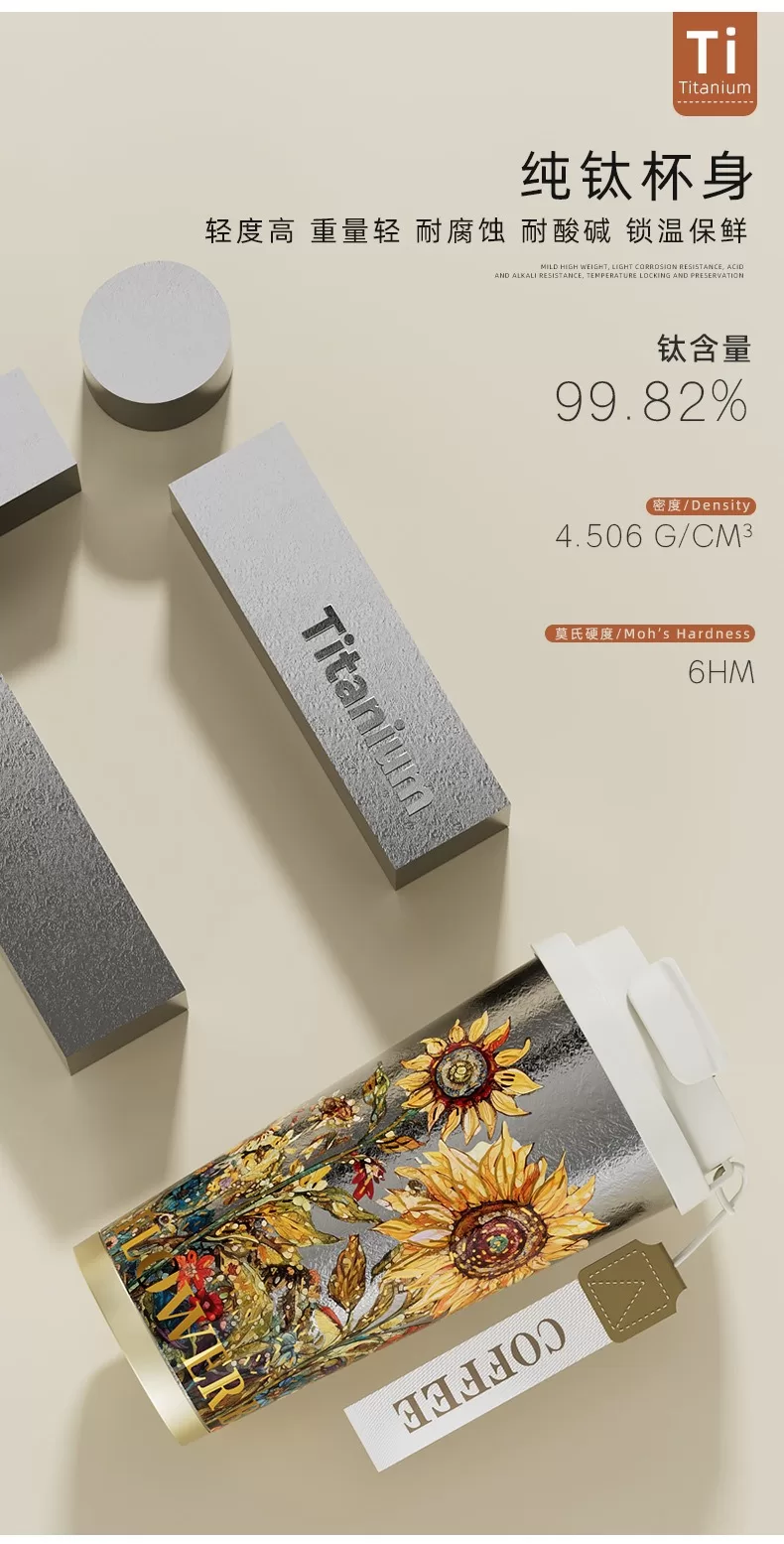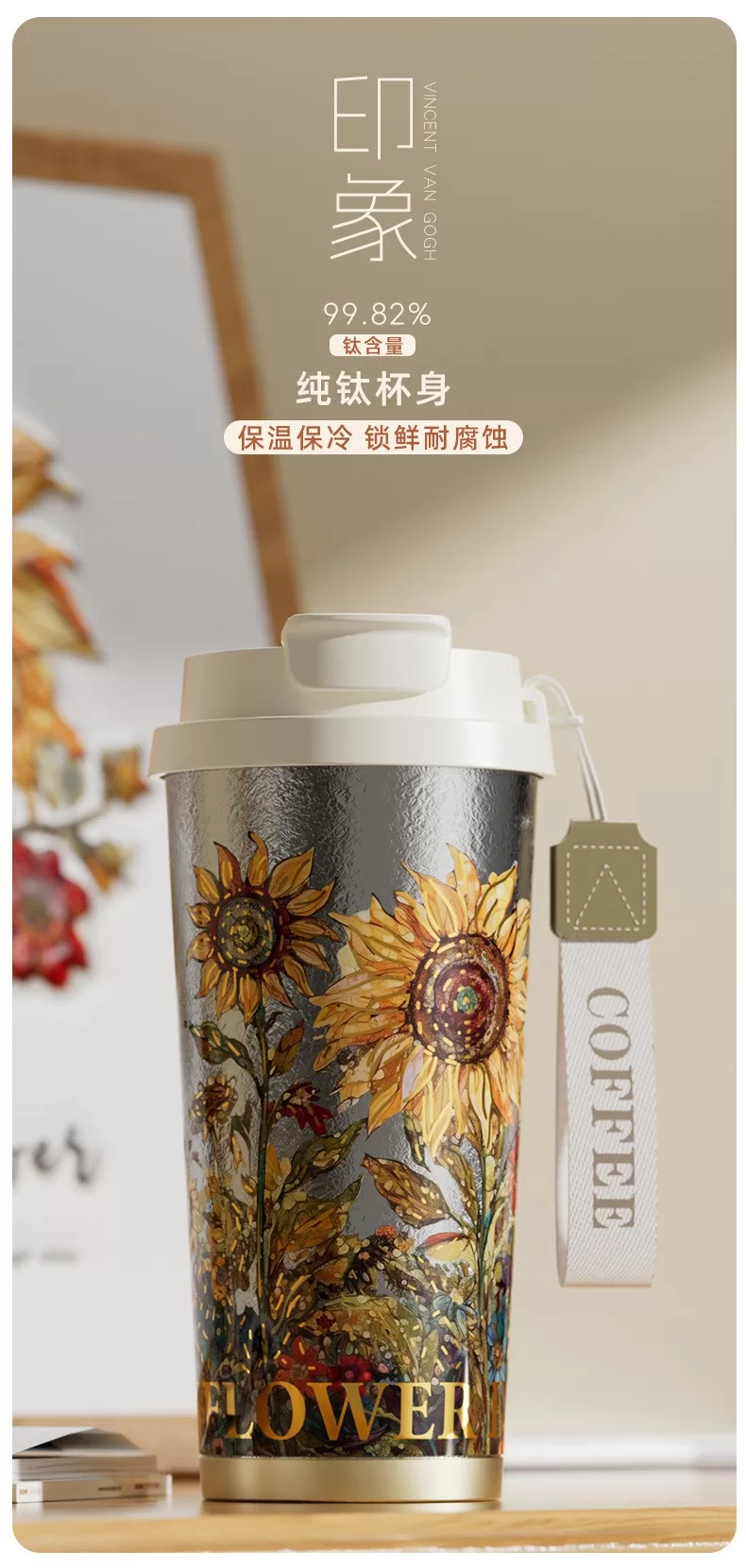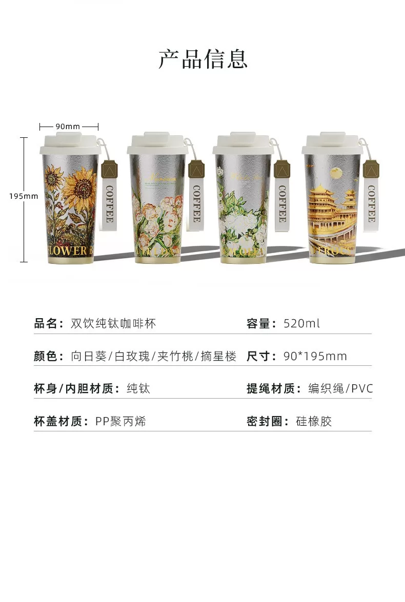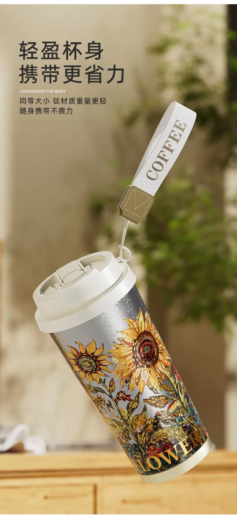 新款輕奢鈴蘭花隨行咖啡純鈦保溫杯 (7色)