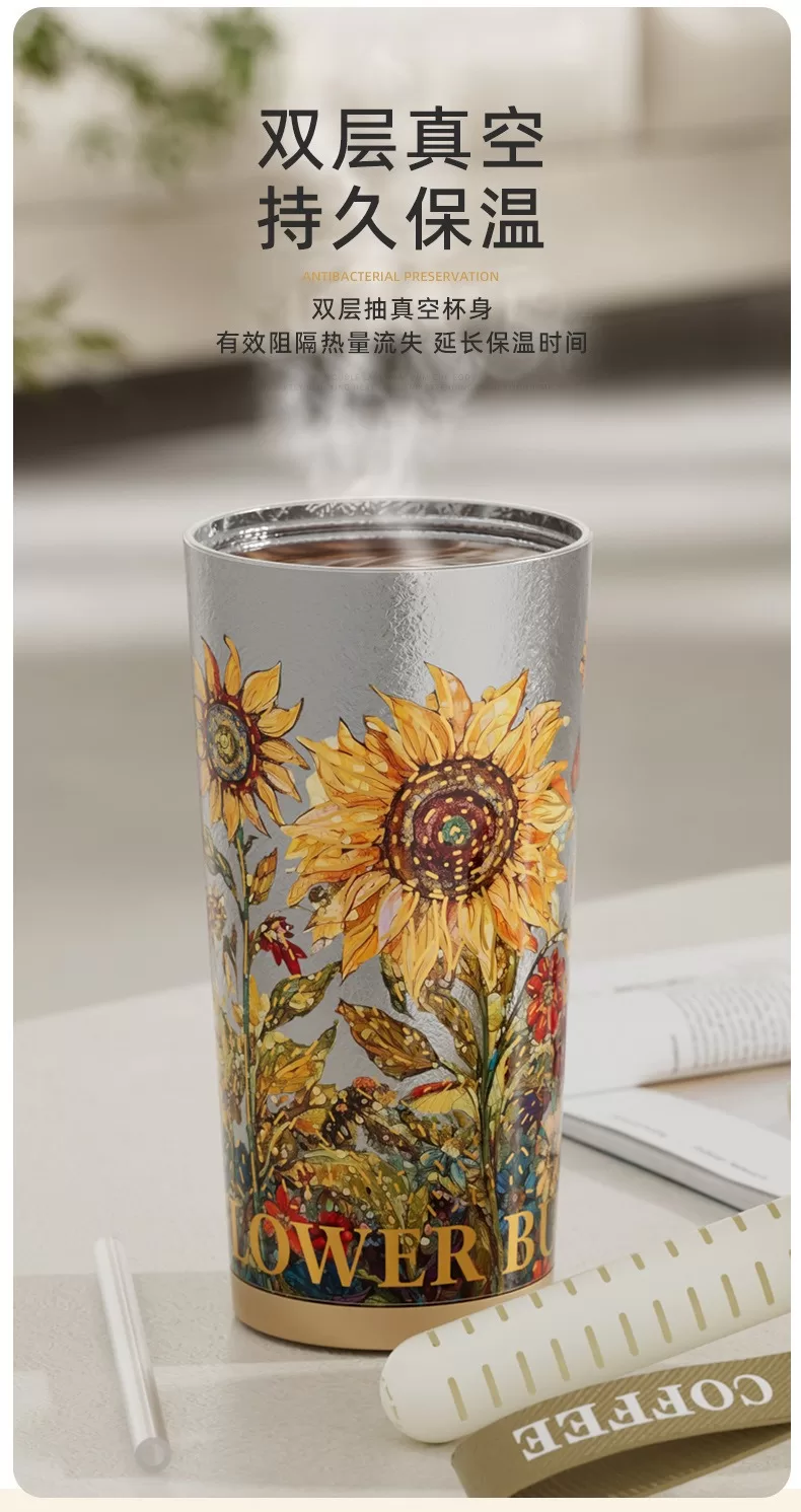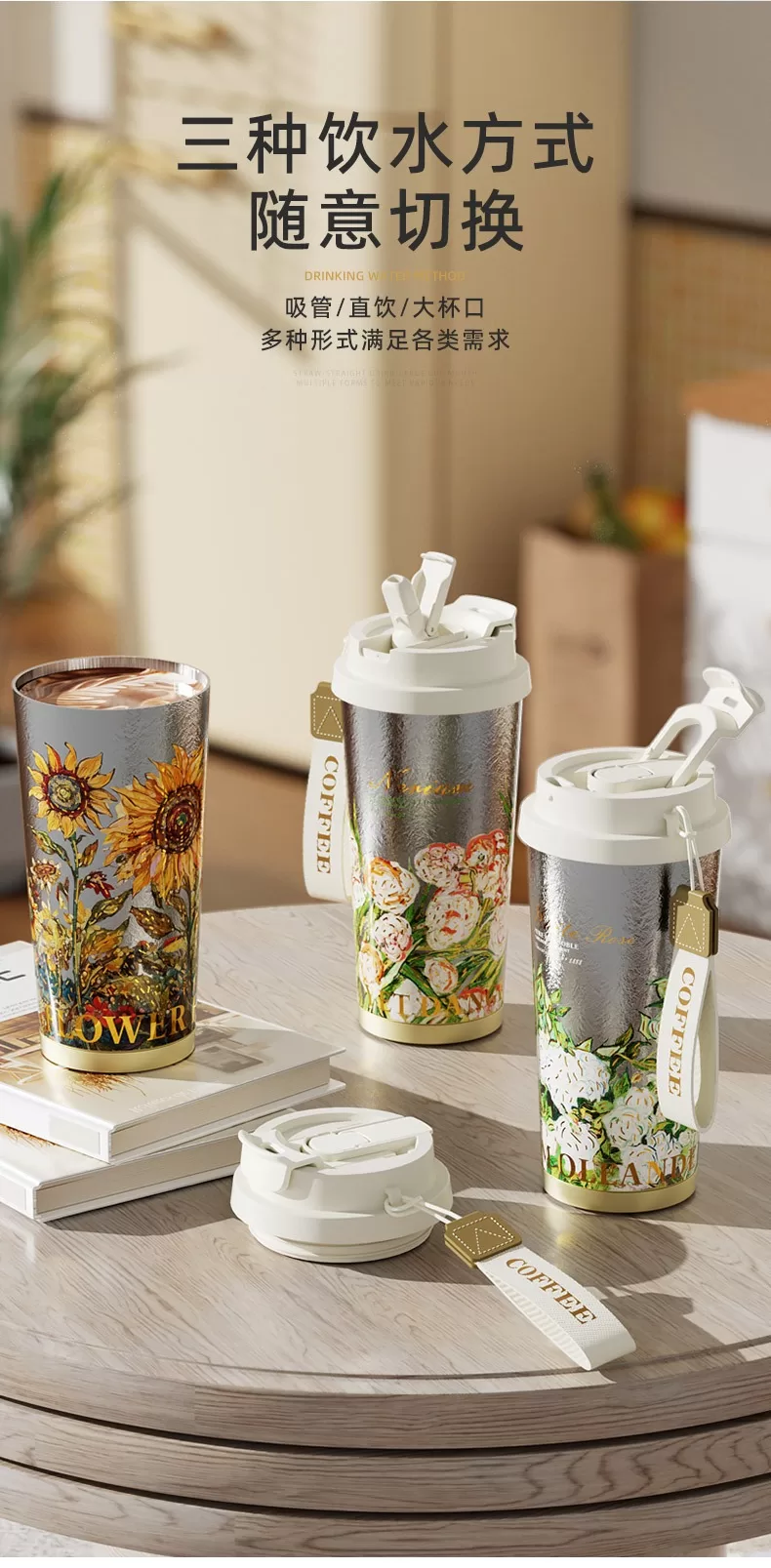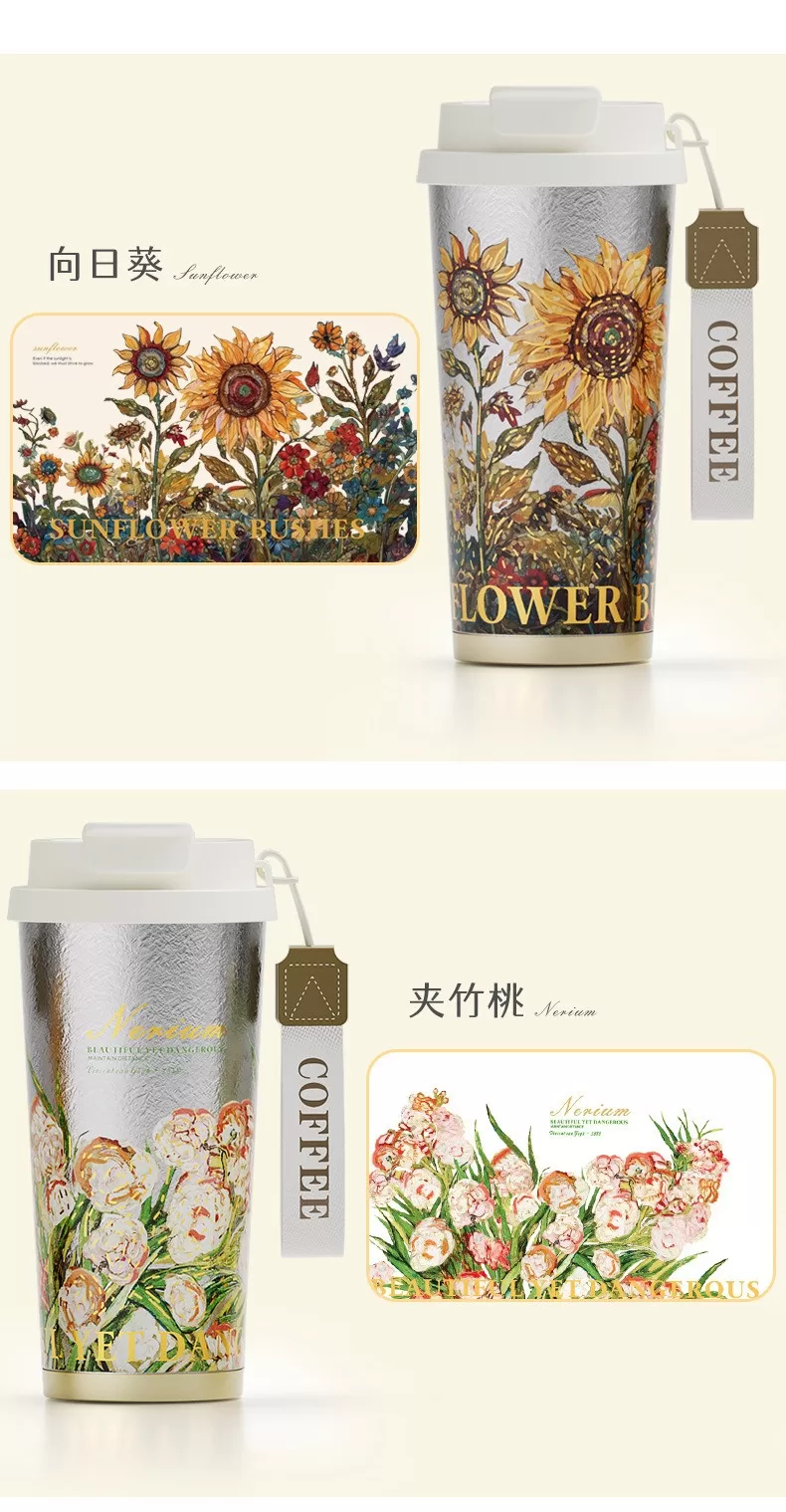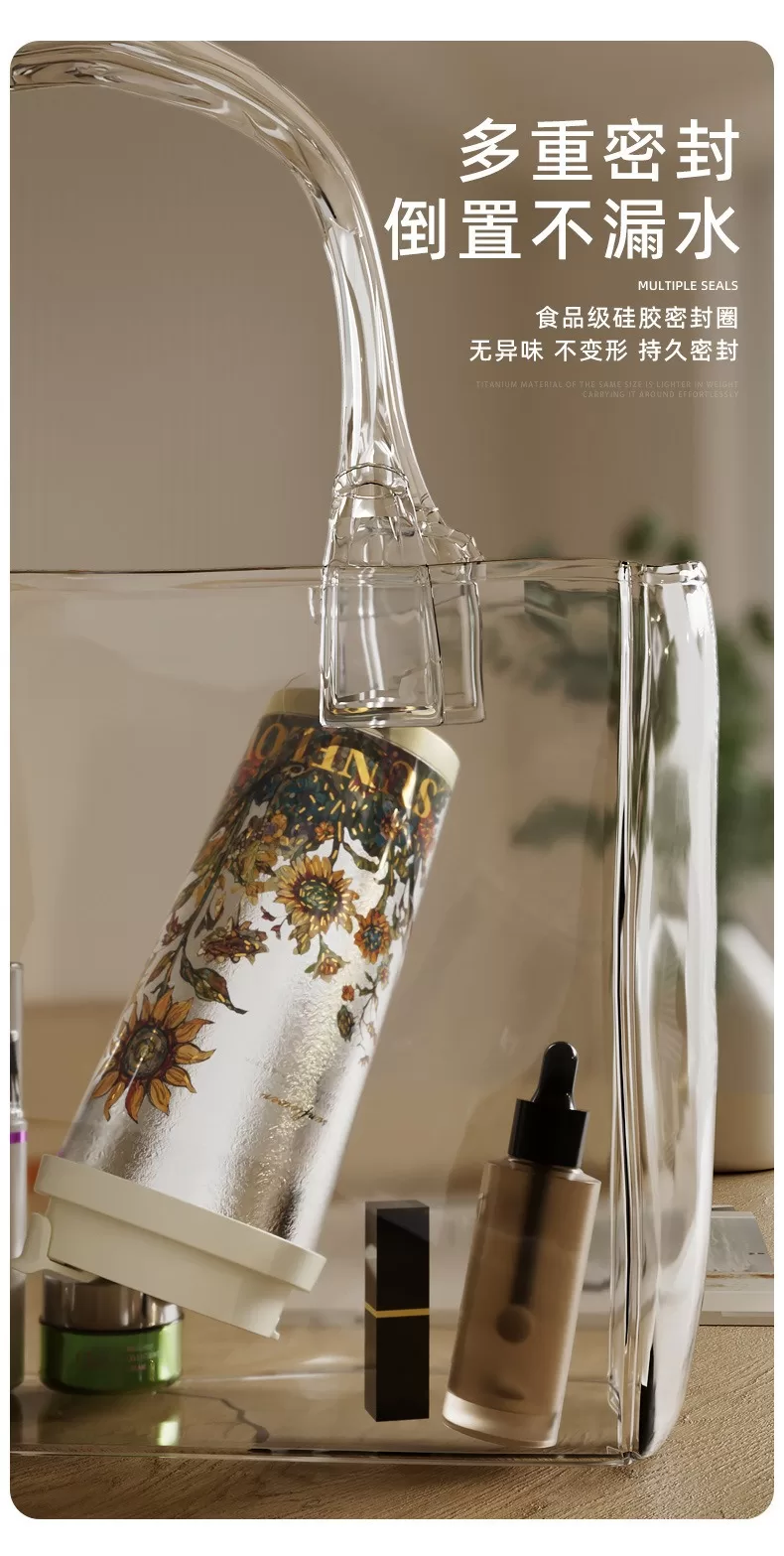 新款輕奢鈴蘭花隨行咖啡純鈦保溫杯 (7色)