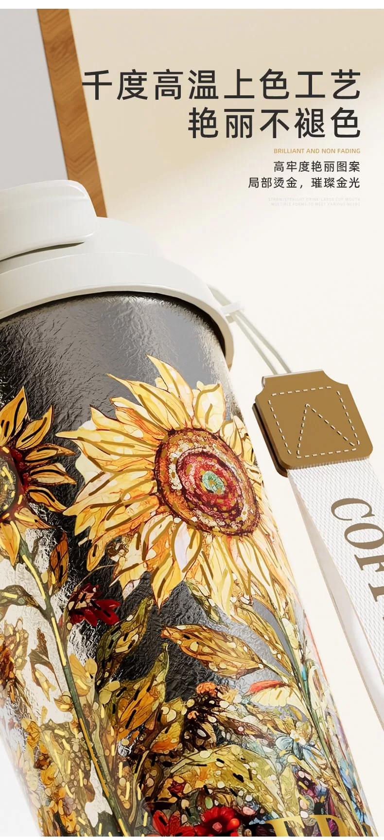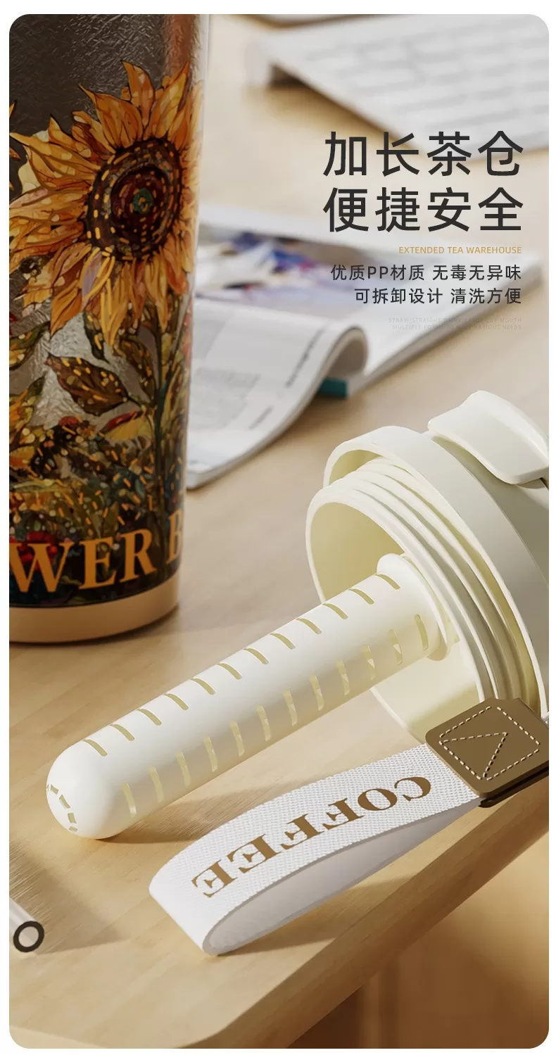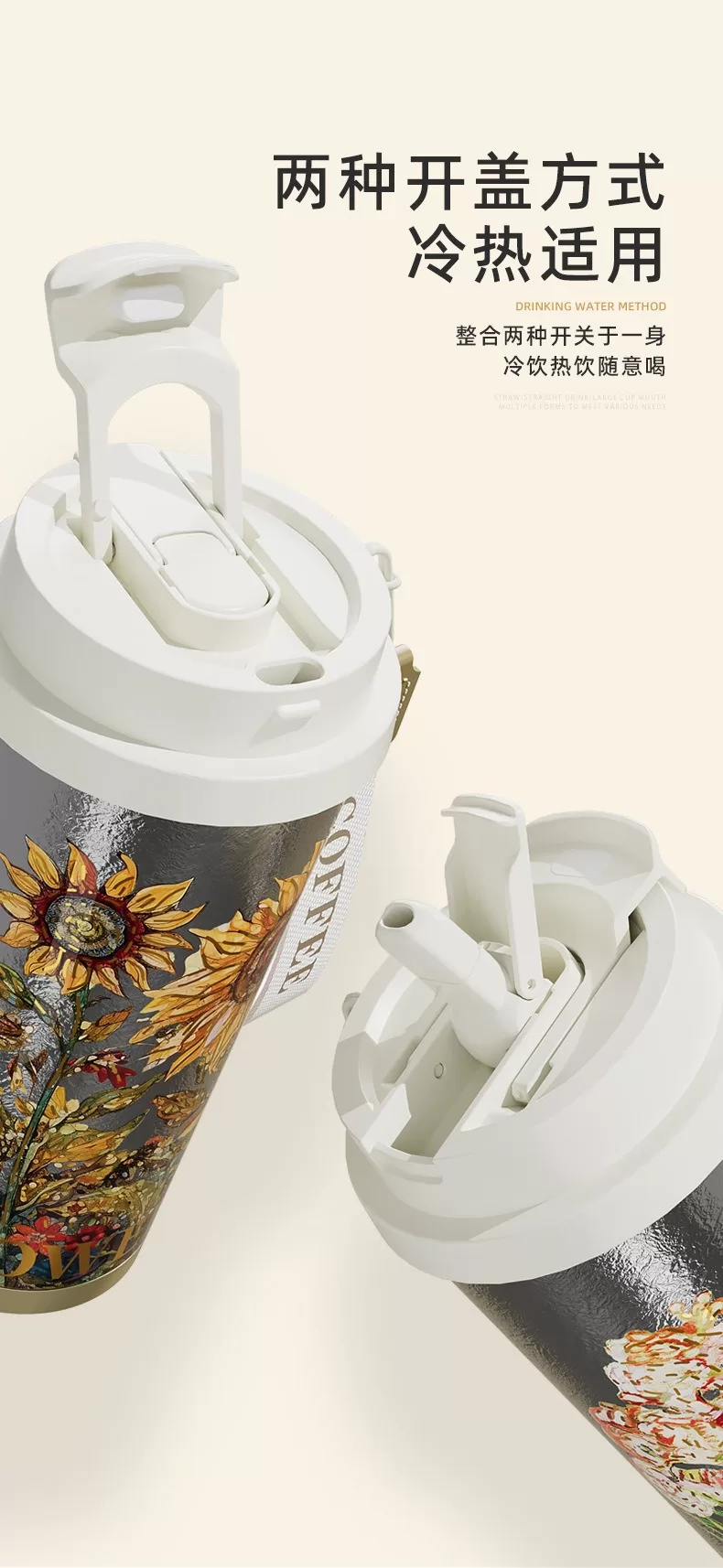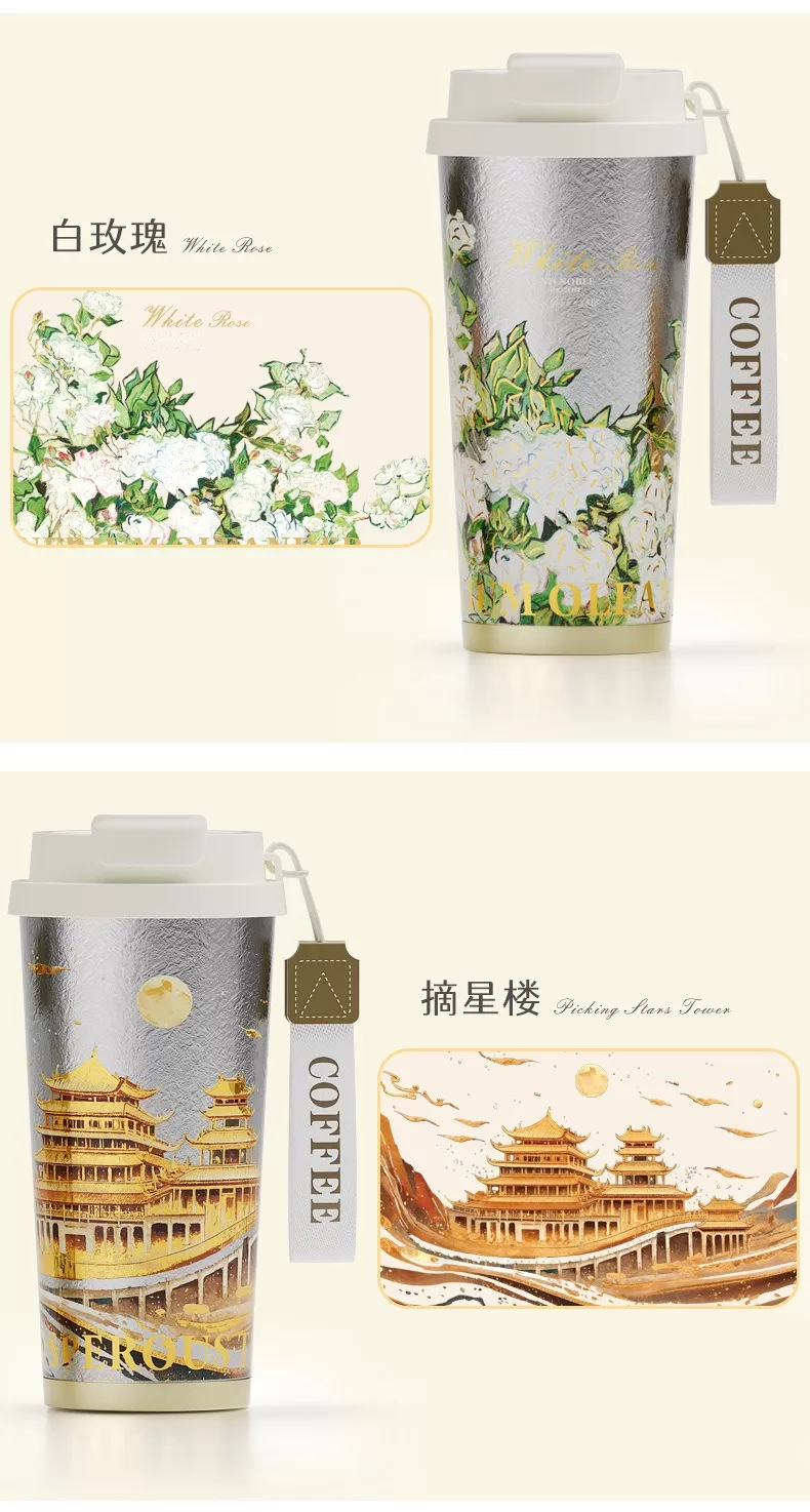 新款輕奢鈴蘭花隨行咖啡純鈦保溫杯 (7色)