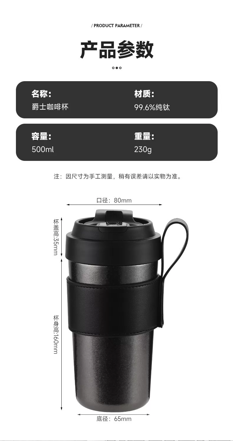 新款溫度顯示|輕奢純鈦咖啡保溫杯禮盒 (3色 / 500ml)