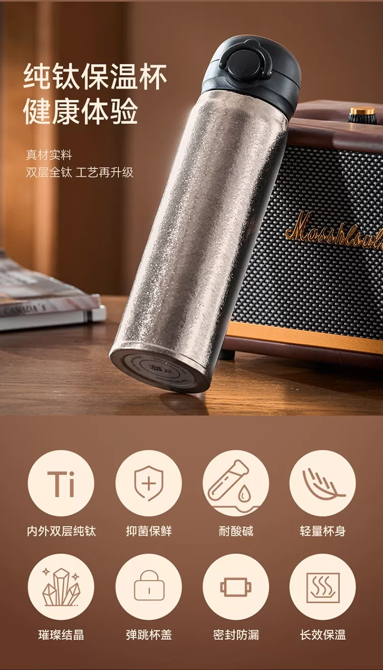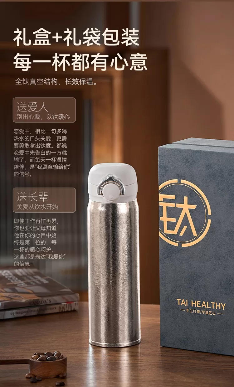 彈跳瓶蓋|戶外運動純鈦保溫杯禮盒 (4色 / 480ml)