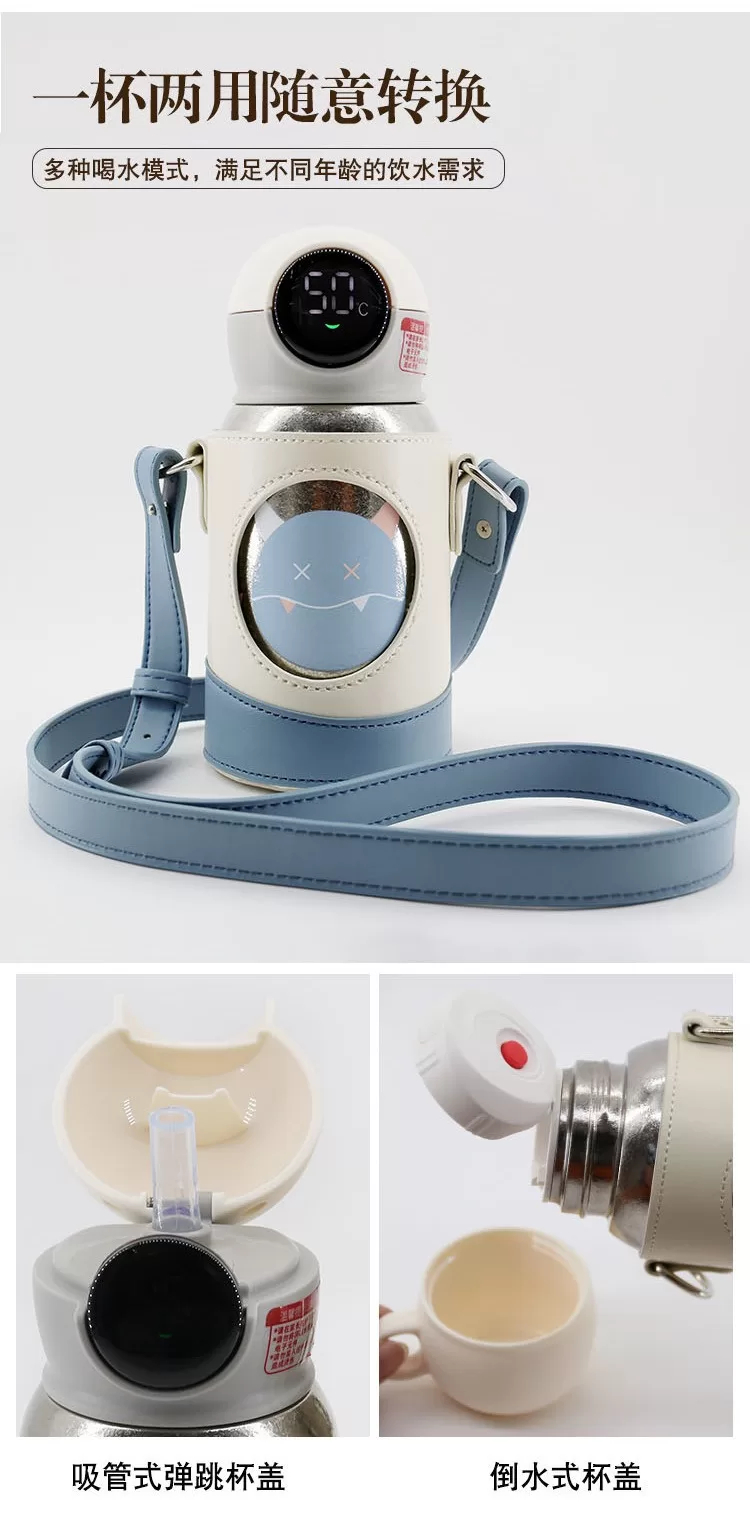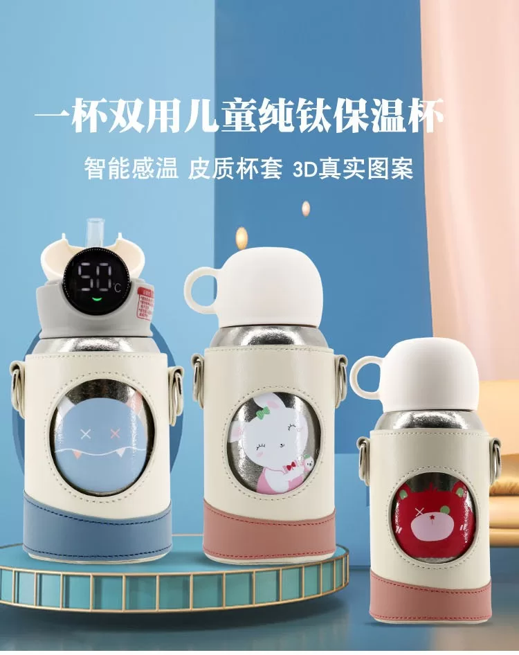 兒童卡通附吸管|溫度顯示健康純鈦保溫杯禮盒 (3色 / 400ml)