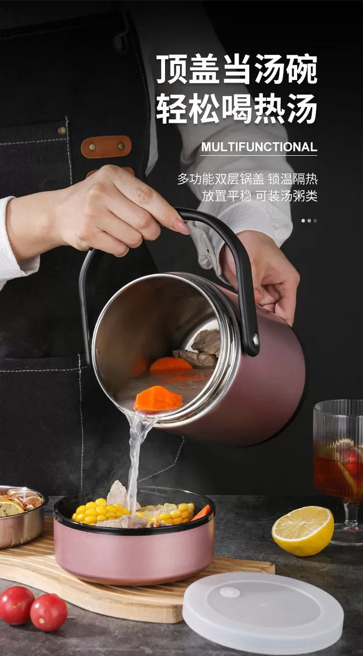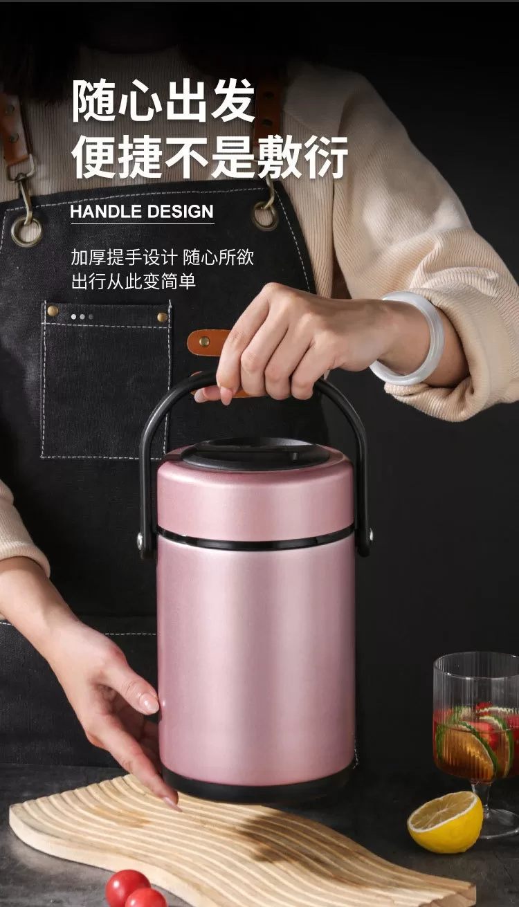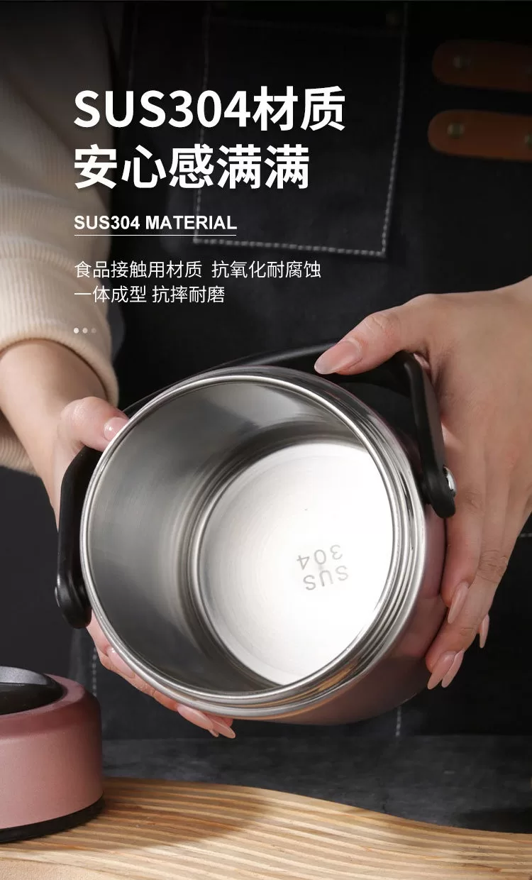 304不銹鋼真空密封保溫桶|上班族、家用便攜大容量提手鍋 (4色)