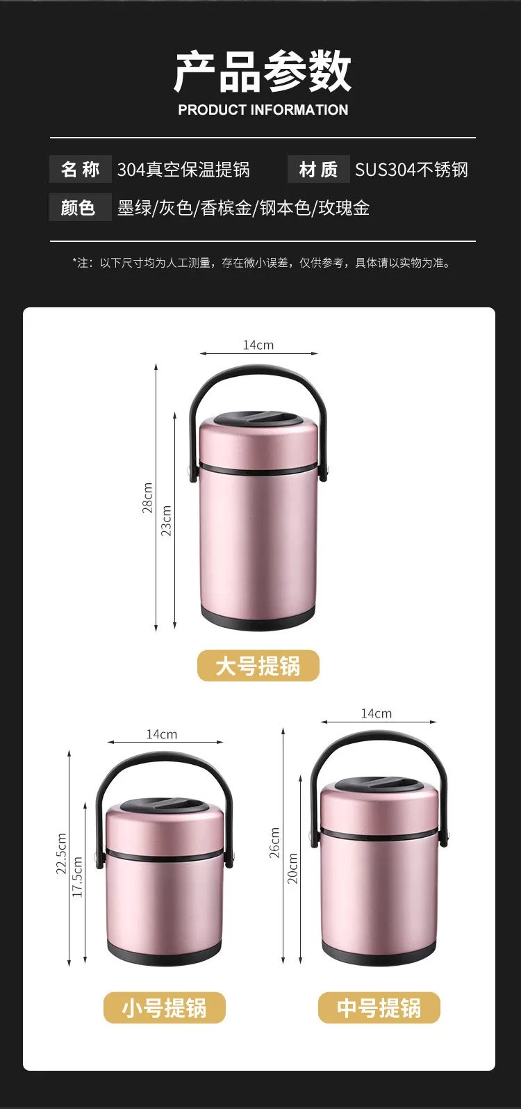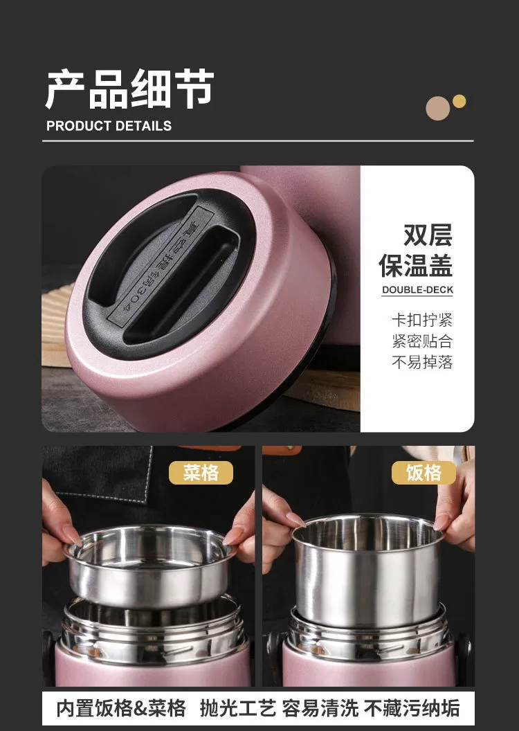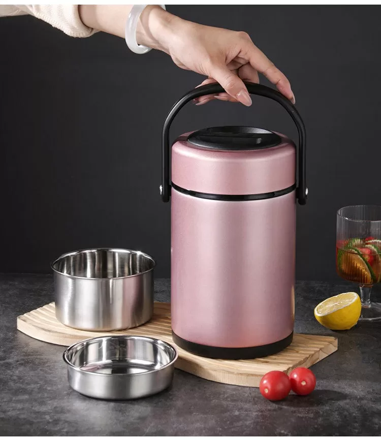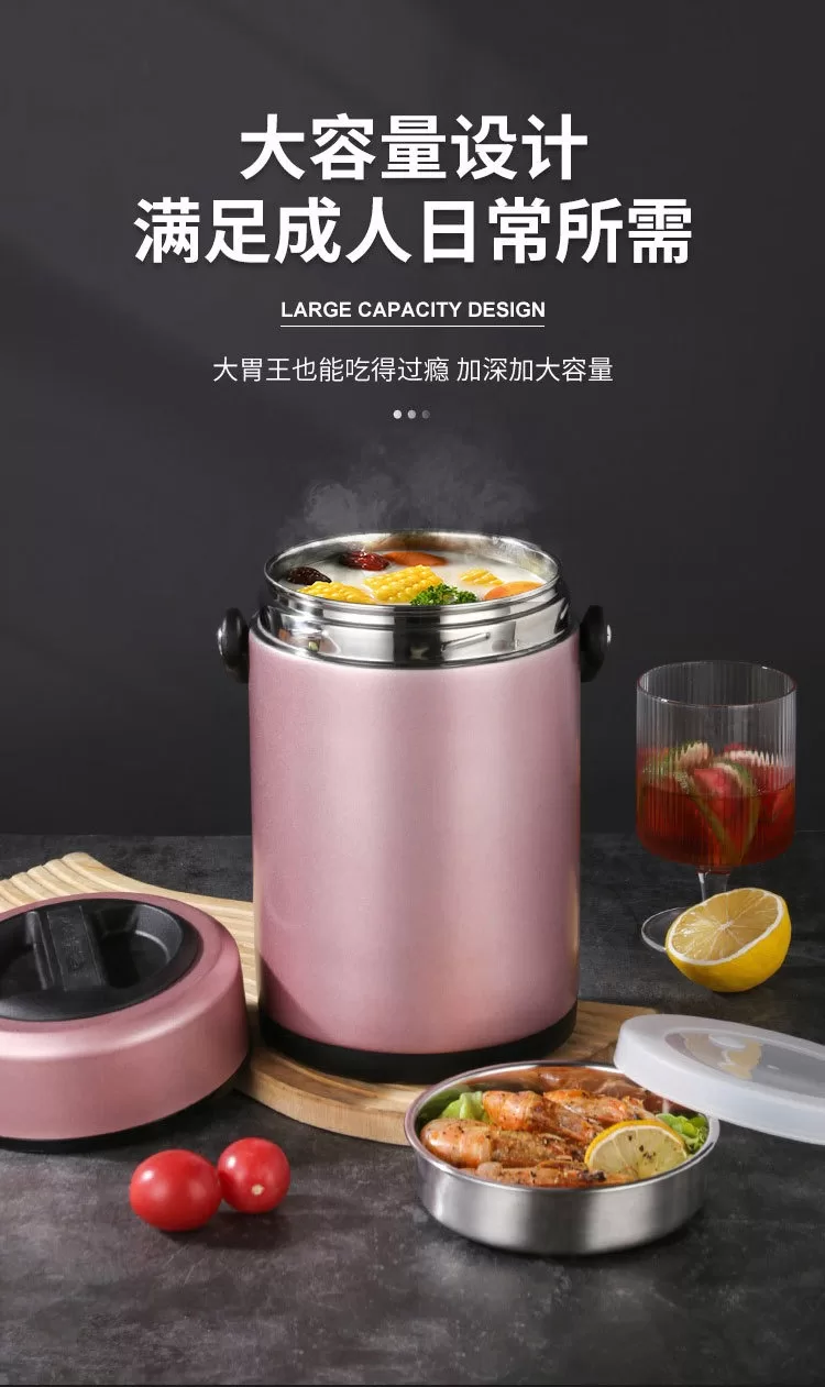 304不銹鋼真空密封保溫桶|上班族、家用便攜大容量提手鍋 (4色)