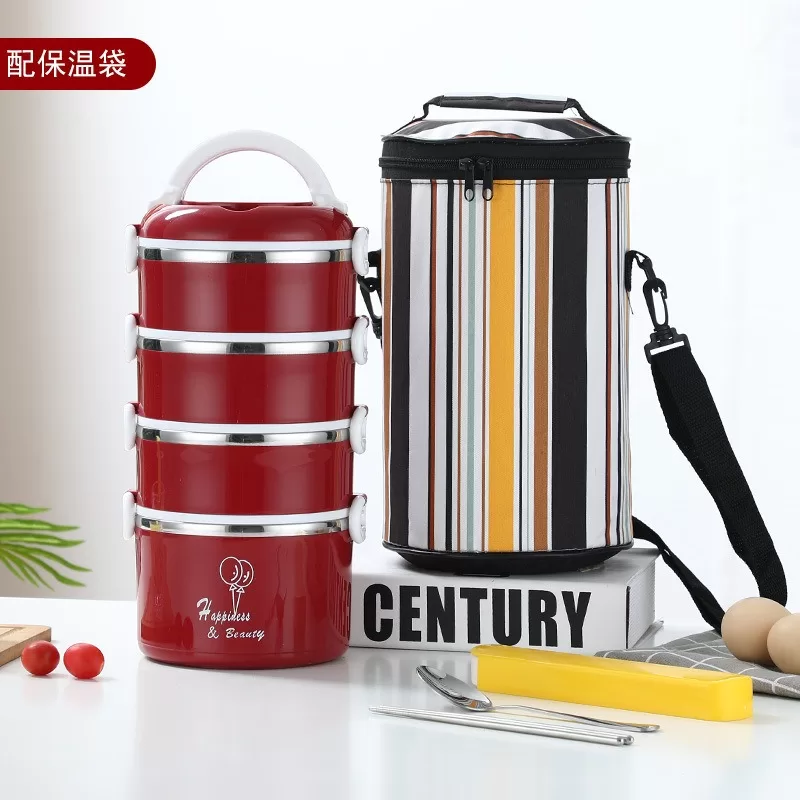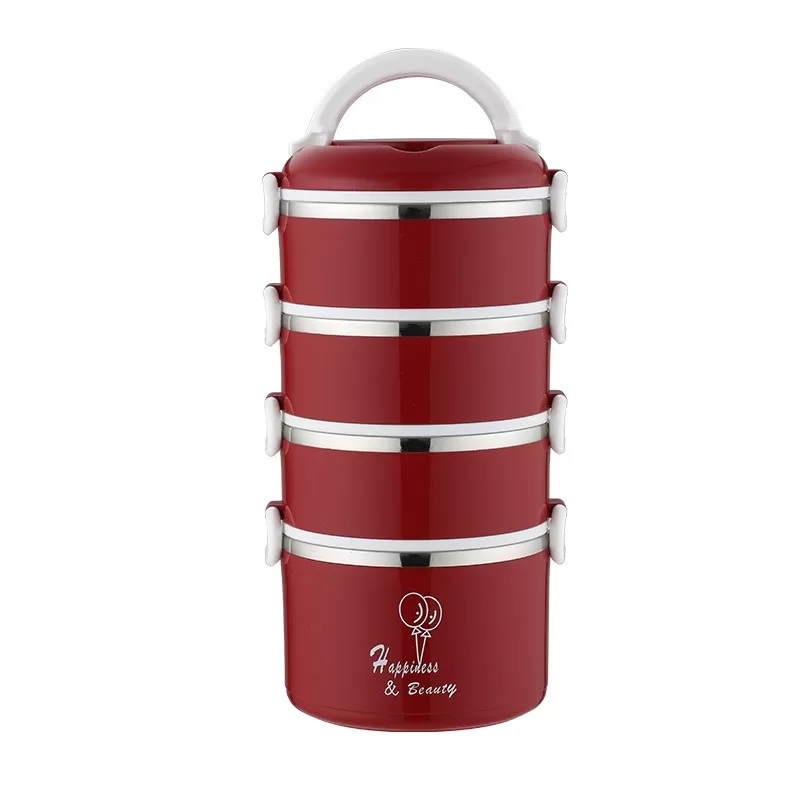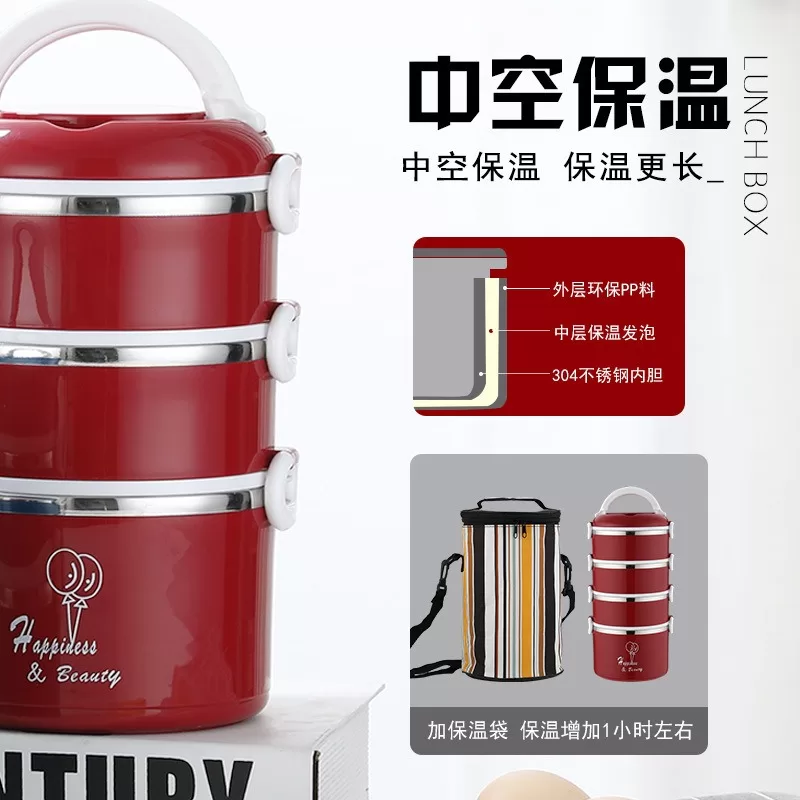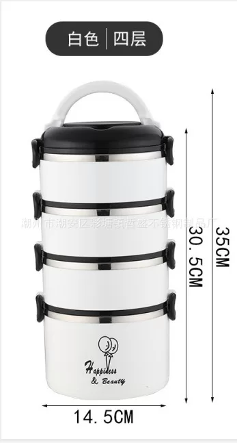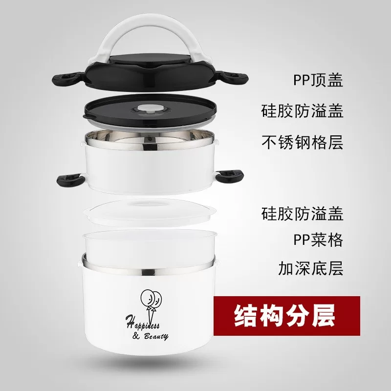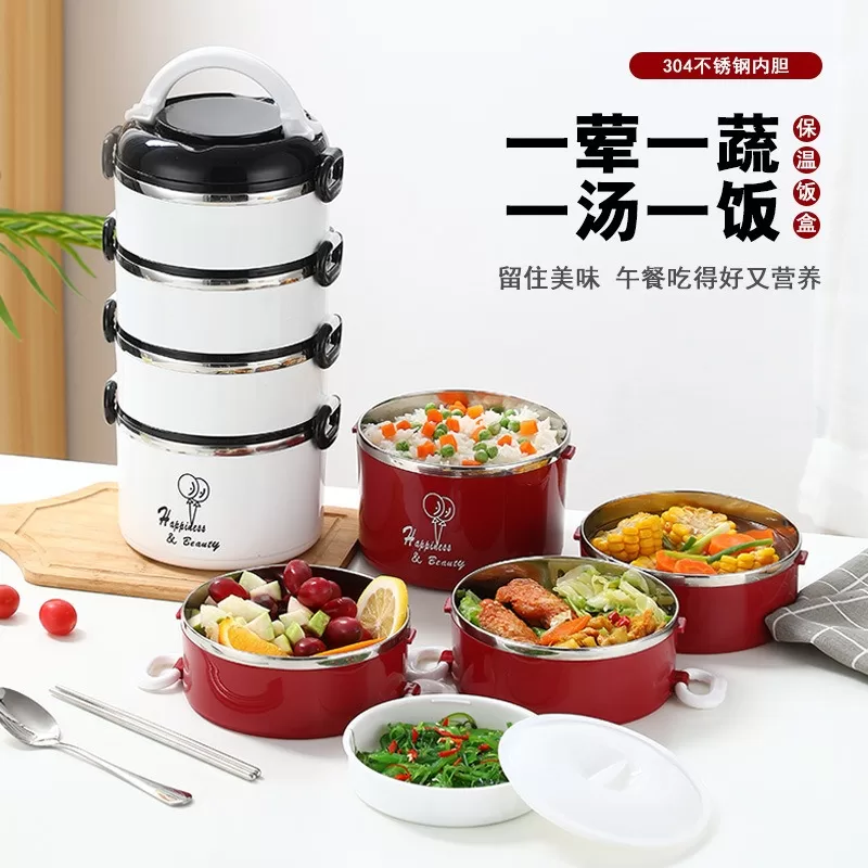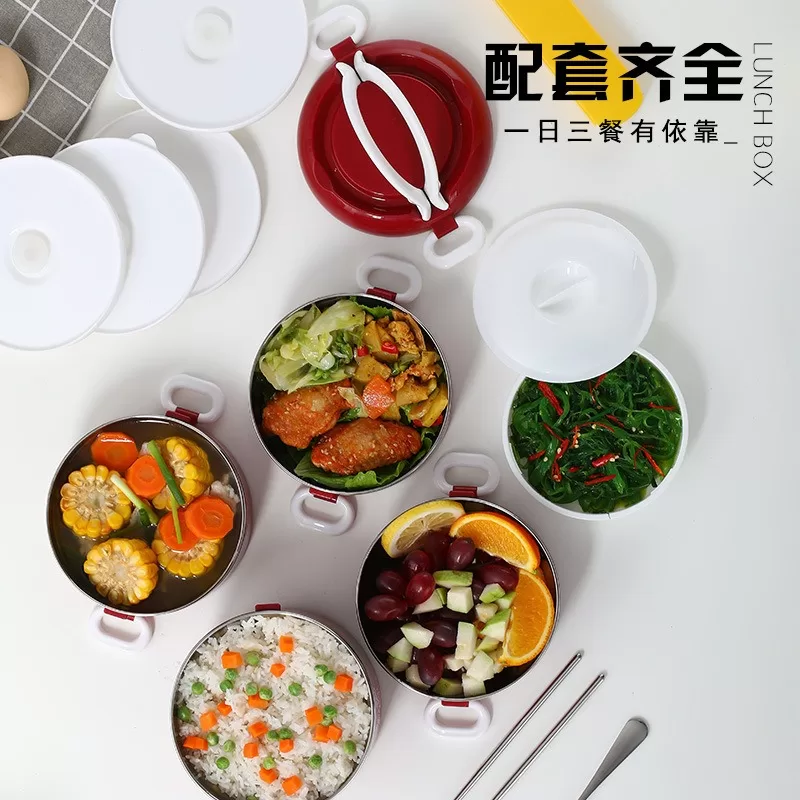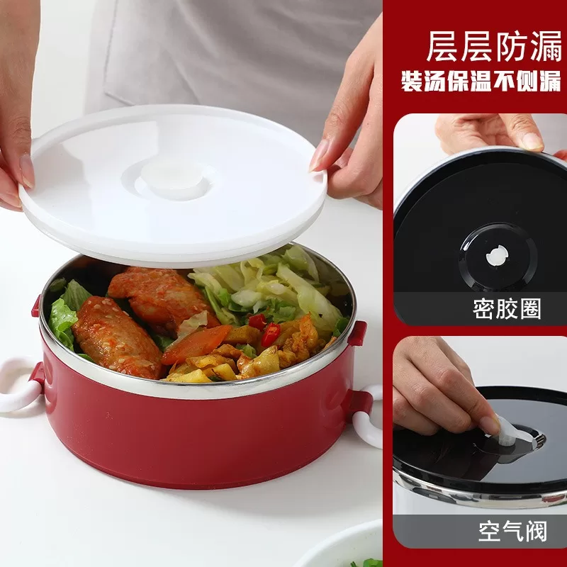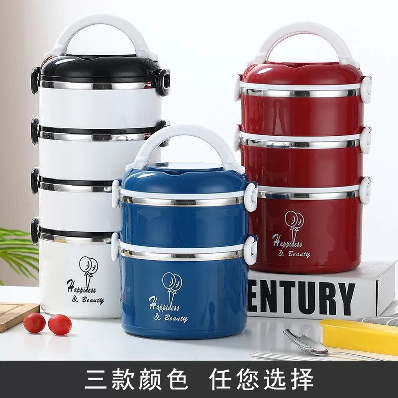 304加厚不銹鋼密封保溫飯盒|圓形盒蓋多層提手便當盒(3色)